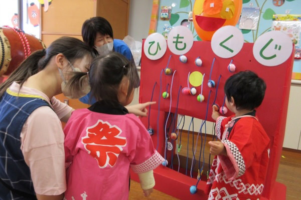 院内でお祭りをして楽しみます。ハロウィンには仮装をして、みんなでおやつを貰いに出かけます。