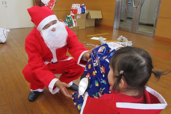 クリスマス会では、サンタさんが一人ひとりにプレゼントをくれます。