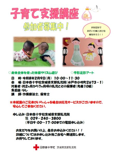 乳児院では、地域の子育てを応援するため、離乳食やベビーマッサージなどをテーマにした子育て支援講座を開催しています。