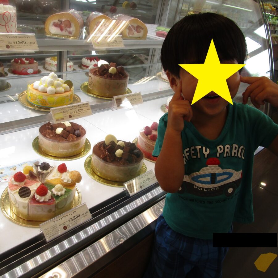 ケーキ屋さんで選んだ誕生日ケーキをみんなで食べたよ。おいしかったな!毎日が楽しい一年になりますように。